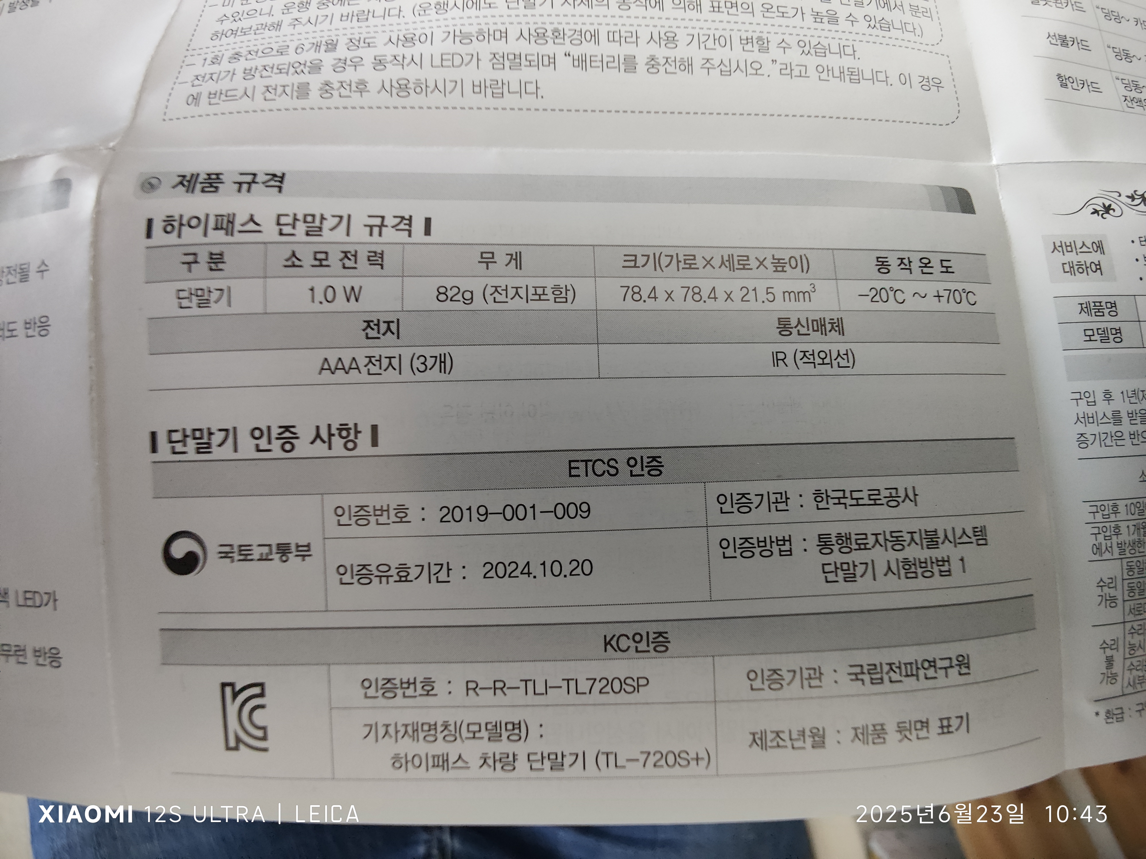 얼마 전 구입한 하이패스 단말기 TL-720S+