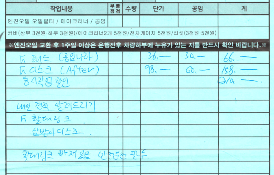 아주 쉽고 간단한 작업이라 회사 직원을 통해 근처 공임나라에 차를 맡겼습니다. 부품 수급도 함께요.