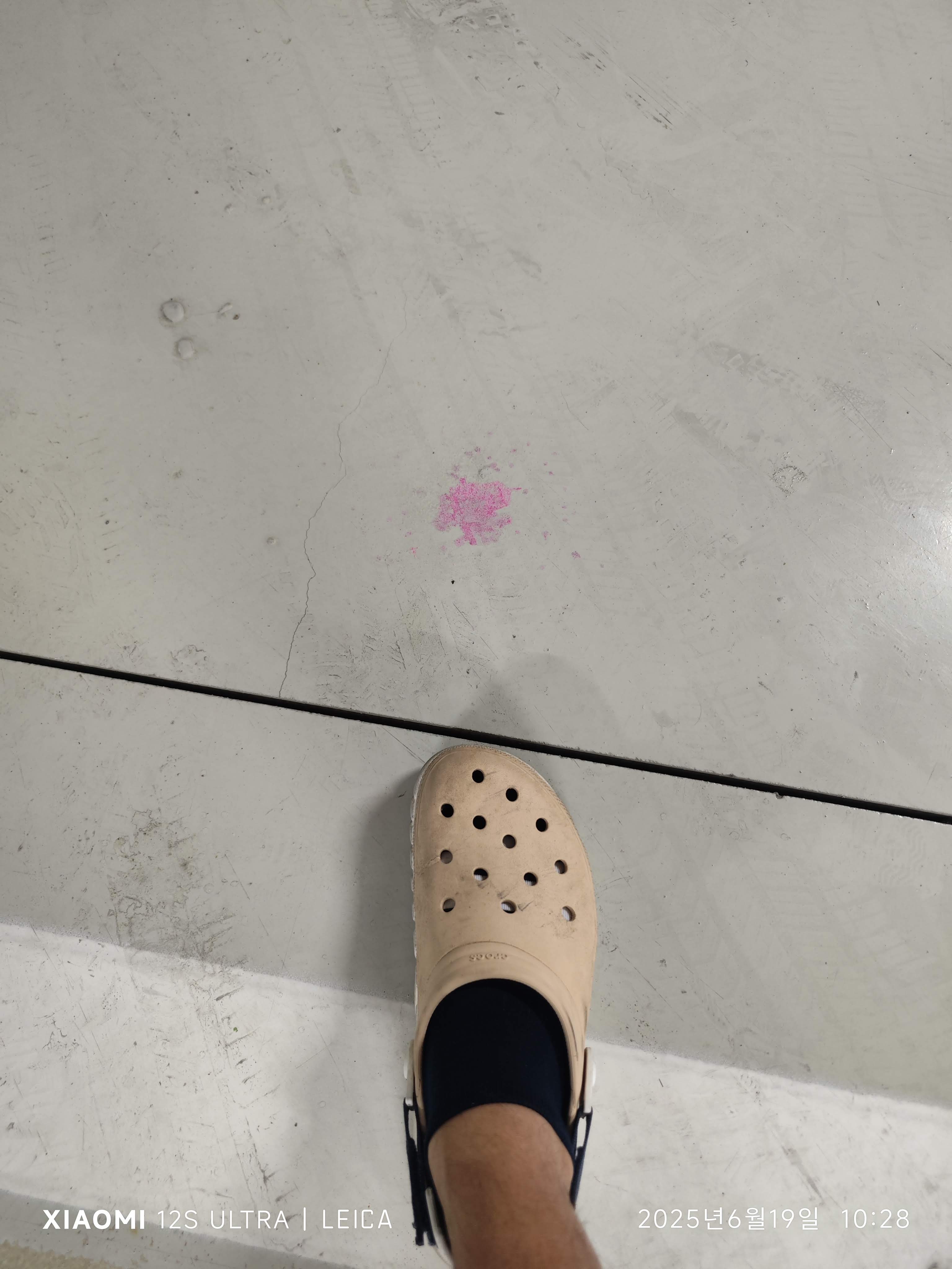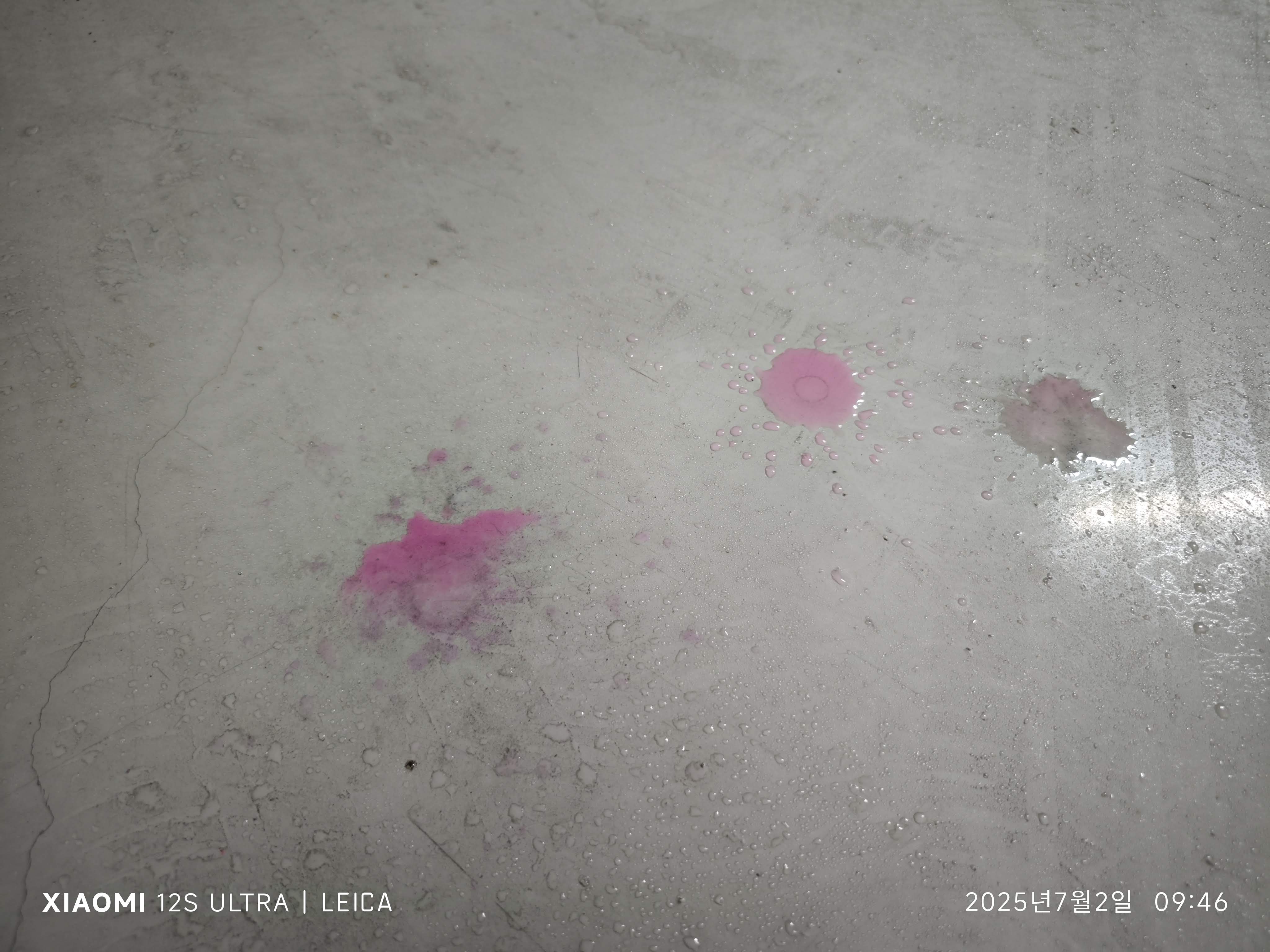 그런데 약 일주일 후, 같은 색의 액체가 바닥에 다시 보입니다. 흠...