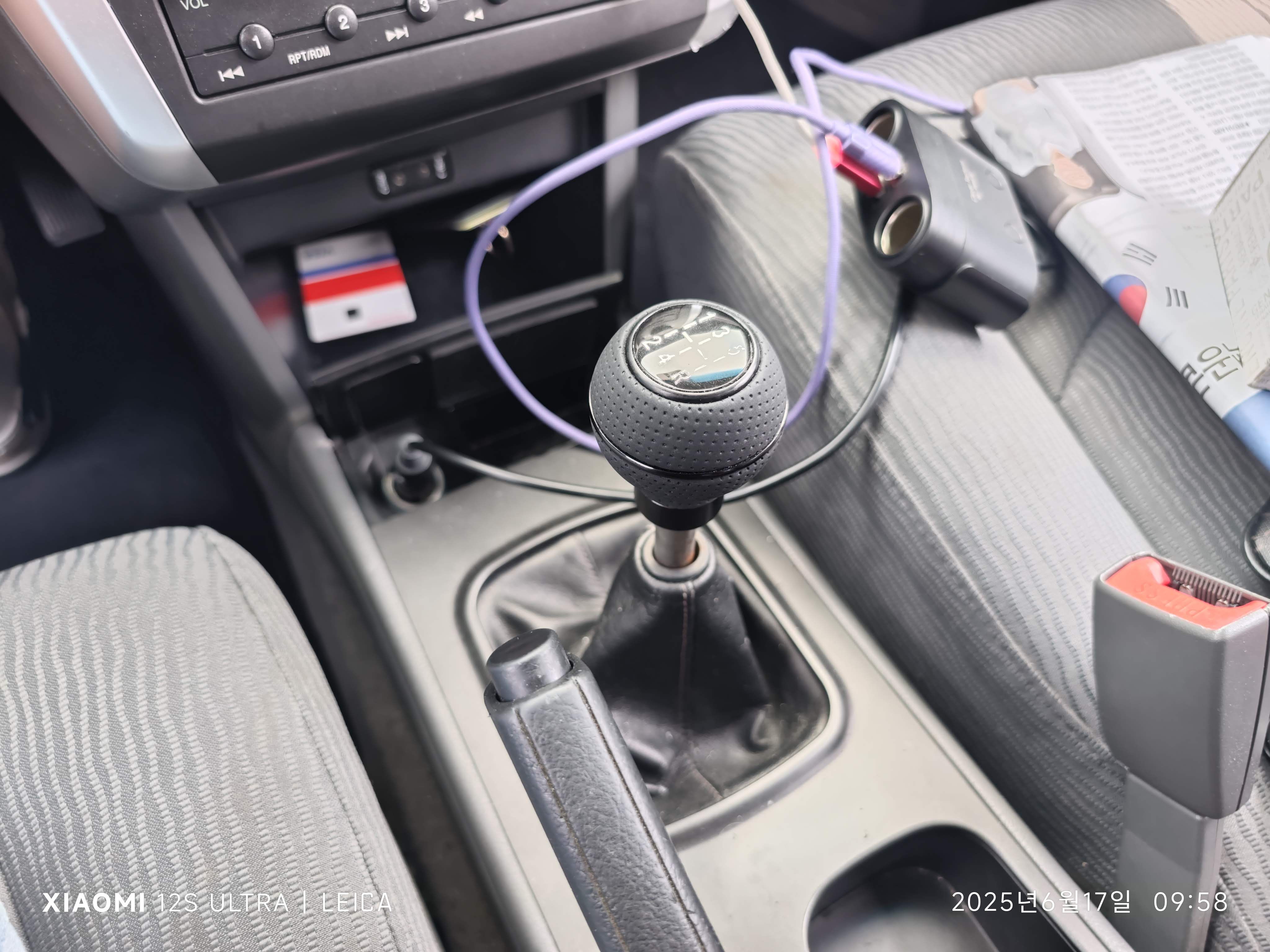 노브가 계속 한쪽으로 돌아가네요. 기어 노브는 보통 돌려서 볼트나 나사처럼 시계방향으로 회전시켜 장착하는 방식이고, 이 제품 역시 그런 방식인데 뭔가 잘못한건지 안맞는건지 글씨 방향을 바르게 두면 끝까지 조여진 상태가 아니어서, 몇 번 기어 조작을 하고 나면 항상 저런 식으로 돌아가는 문제가 생기더군요.