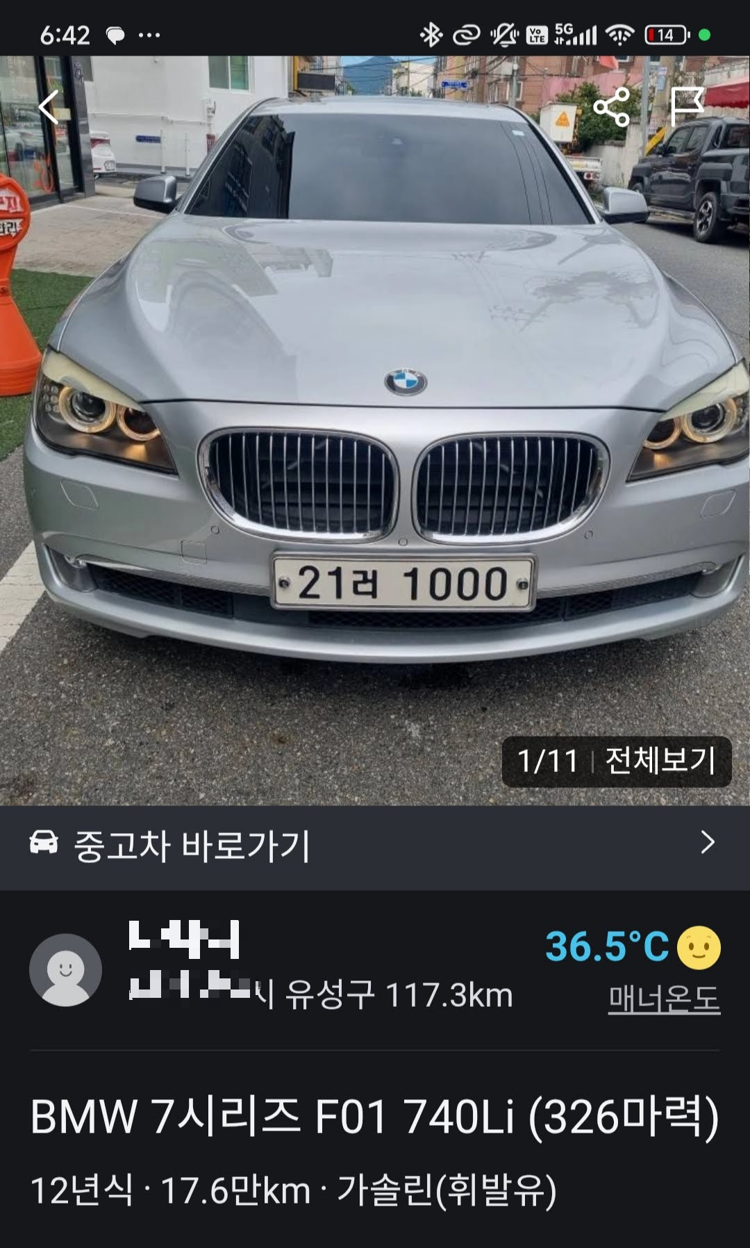 여러대 보다 보니 어느 정도 기준이 생기더군요. 그러다가 대전에 판매중인 당근 개인매물이 레이더에 들어왔습니다. 예산을 거의 꽉 채우는 금액이라 구미가 확 당기진 않았지만 꽤 귀한 골드넘버를 가졌다는 점이 관심을 끌더군요.