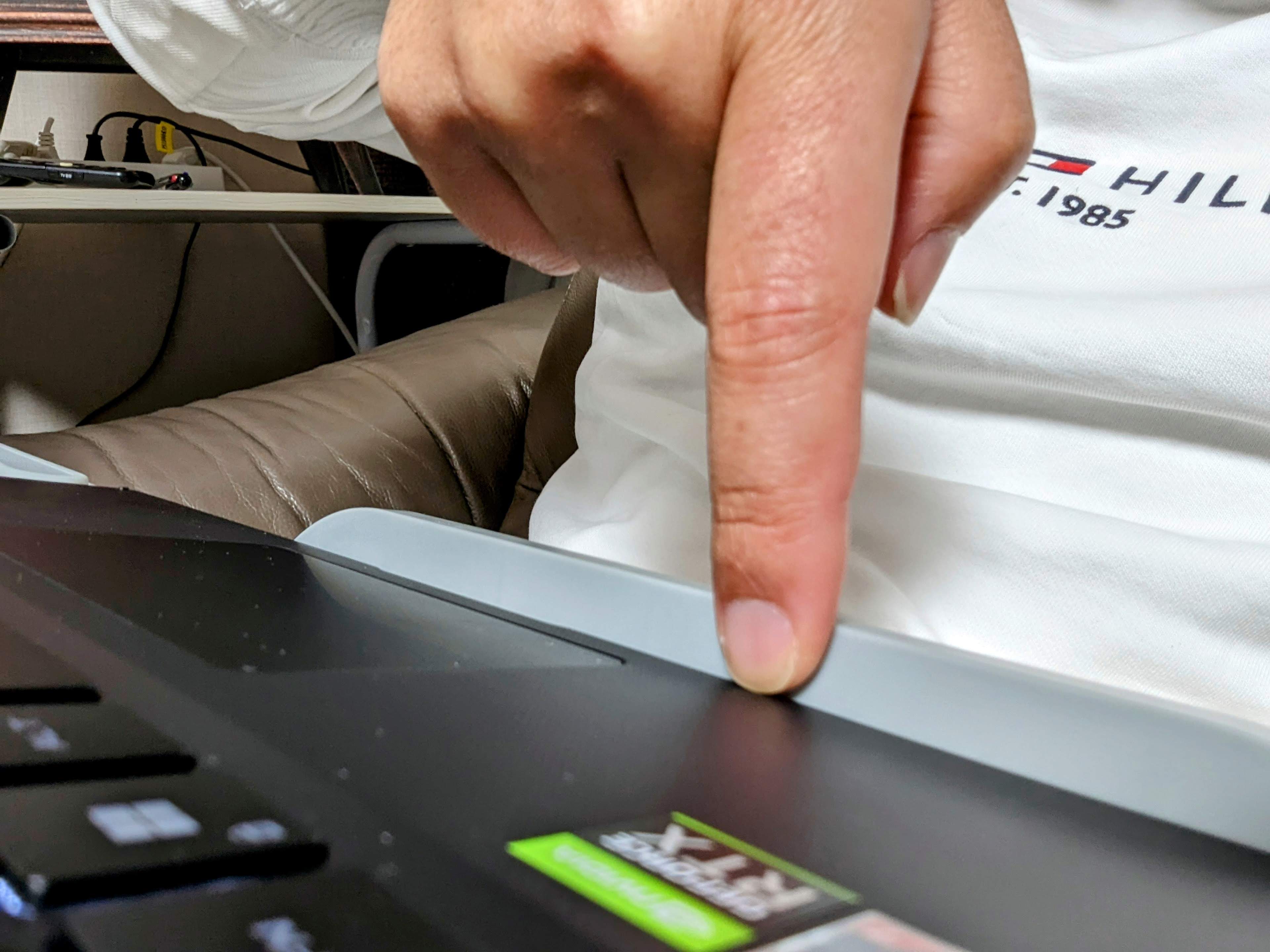 게다가 스토퍼의 높이도 상당해서, 앞의 사진처럼 상판 정 중앙에 노트북을 올려두고 사용하면, 왼쪽 손목이 스토퍼 위에 걸쳐지게 되는데 상당히 불편합니다.