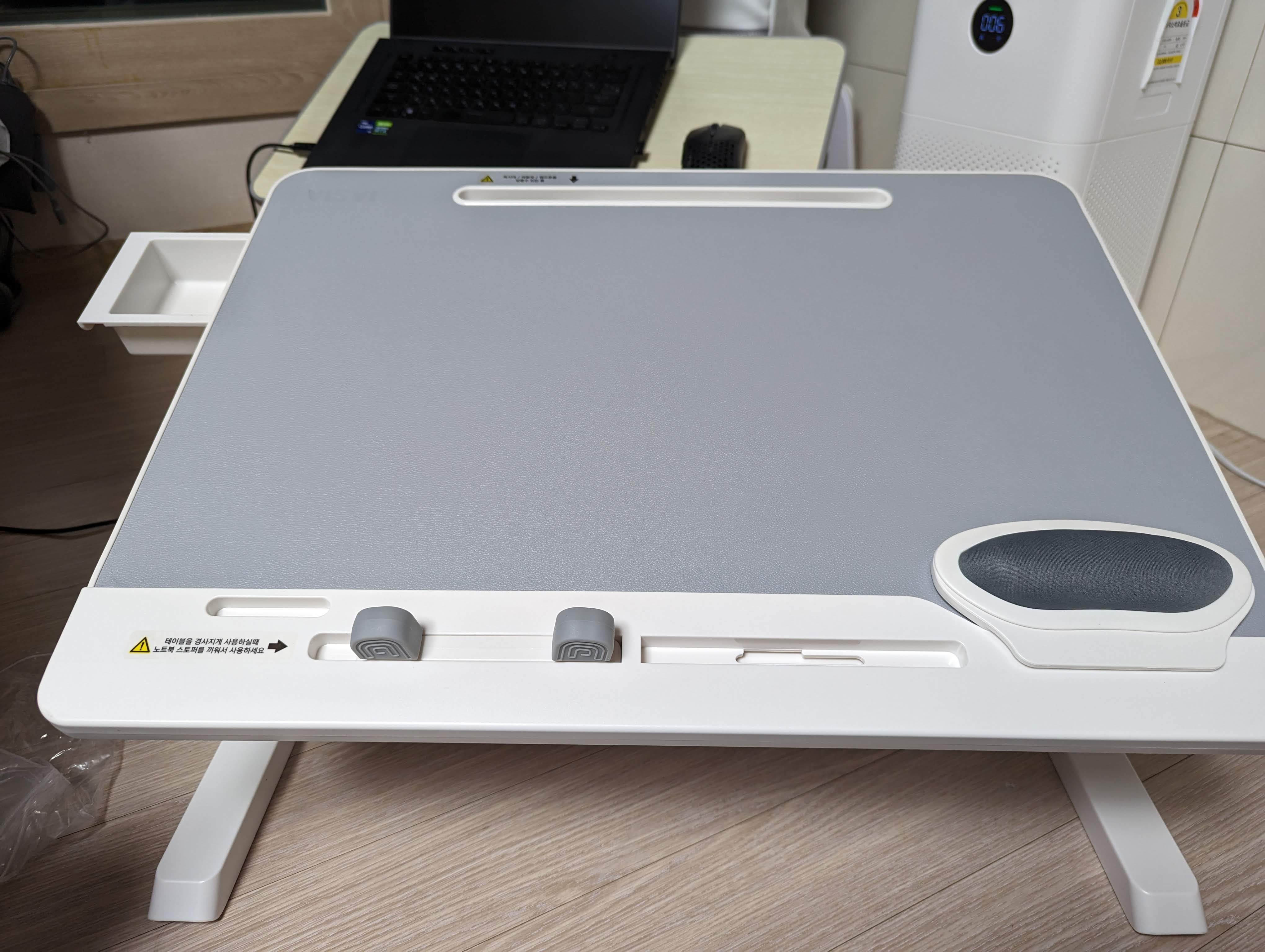 노트북을 중앙쯤에 올려둘 수 있는 제품은 많지만, 마우스까지 떨어지지 않게 잡아주는 제품은 많지 않네요. 그래도 최선을 다해 골라 보았습니다.