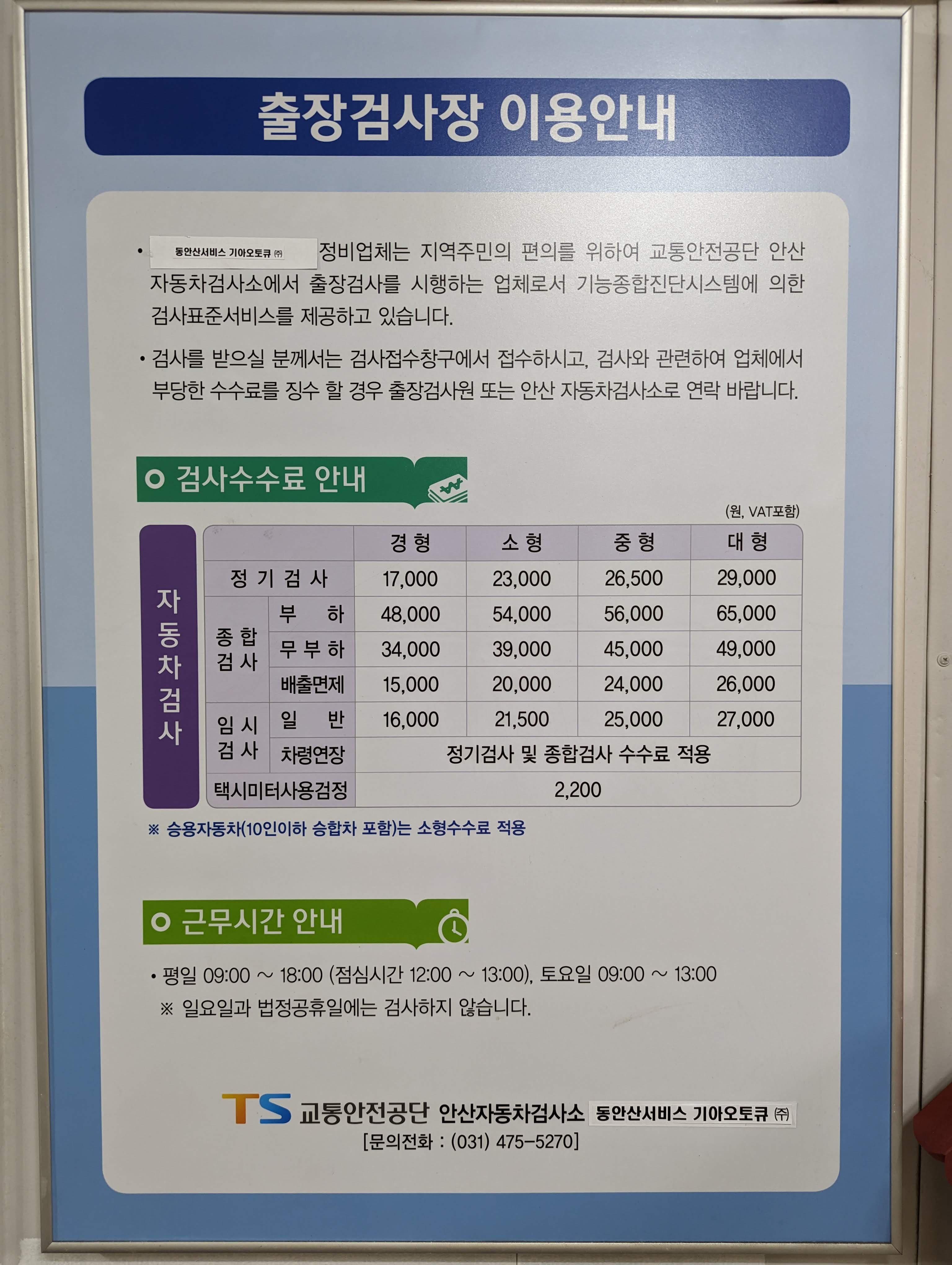 TS 한국교통안전공단 안산자동차출장검사소 - 동안산서비스기아오토큐