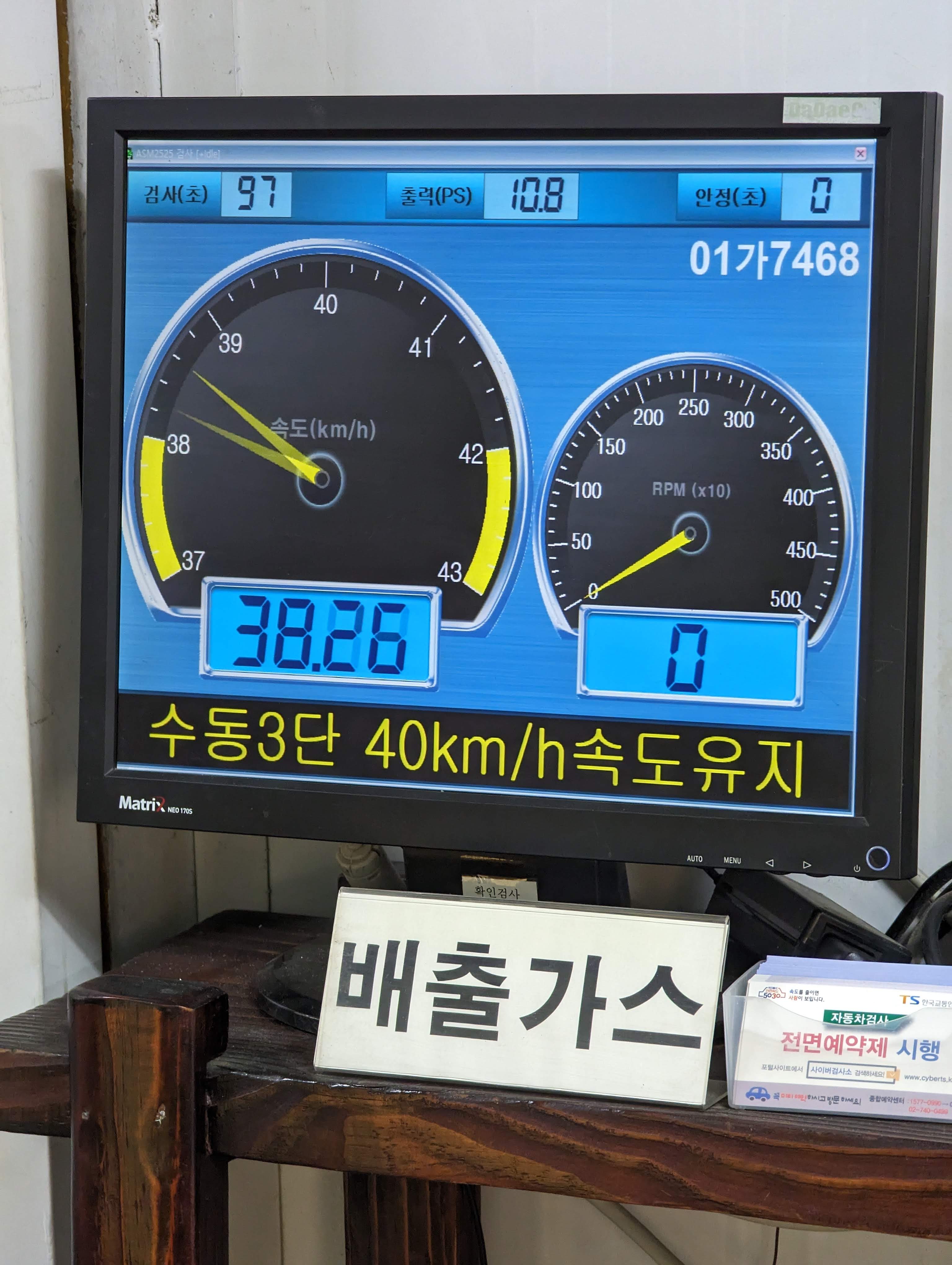 배기가스 검사. 일정 기준에 맞게 부하를 걸어준 상태에서 하는군요.