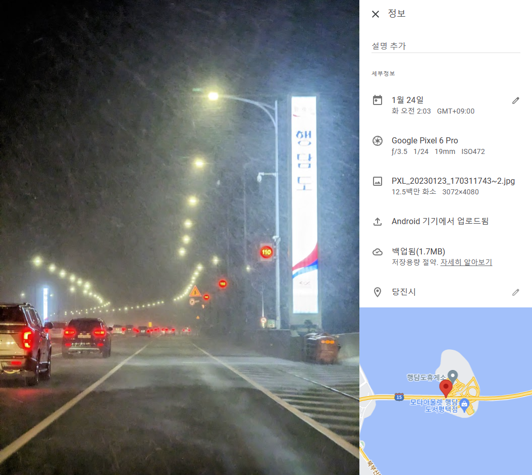 행담도 휴게소 근처의 눈폭풍.
