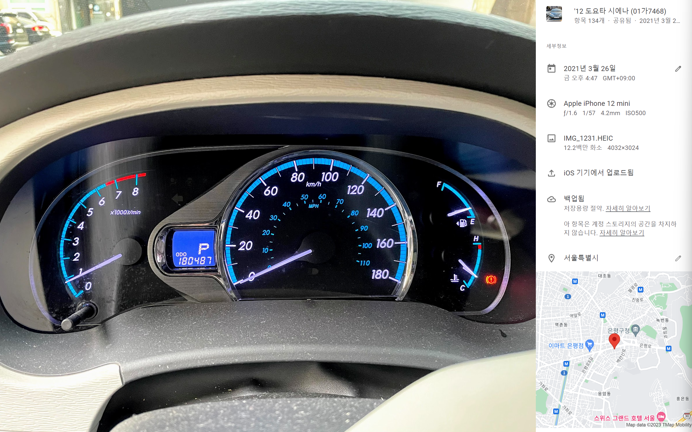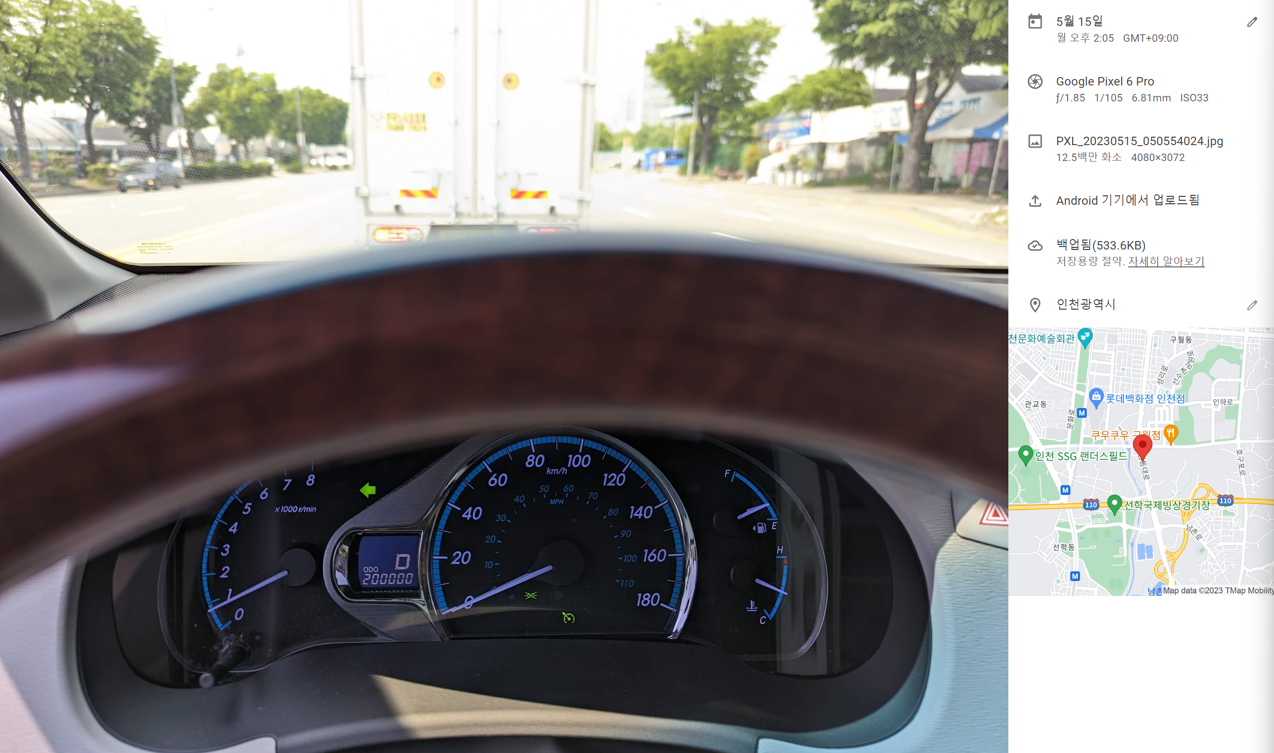 20만km 되기까지 1m가 남은건지 999m가 남은건지 알 수 없습니다. 20만km 되는 모습도 찍기 위해 카메라 앱을 켜고 만반의 준비를 해 둡니다.
