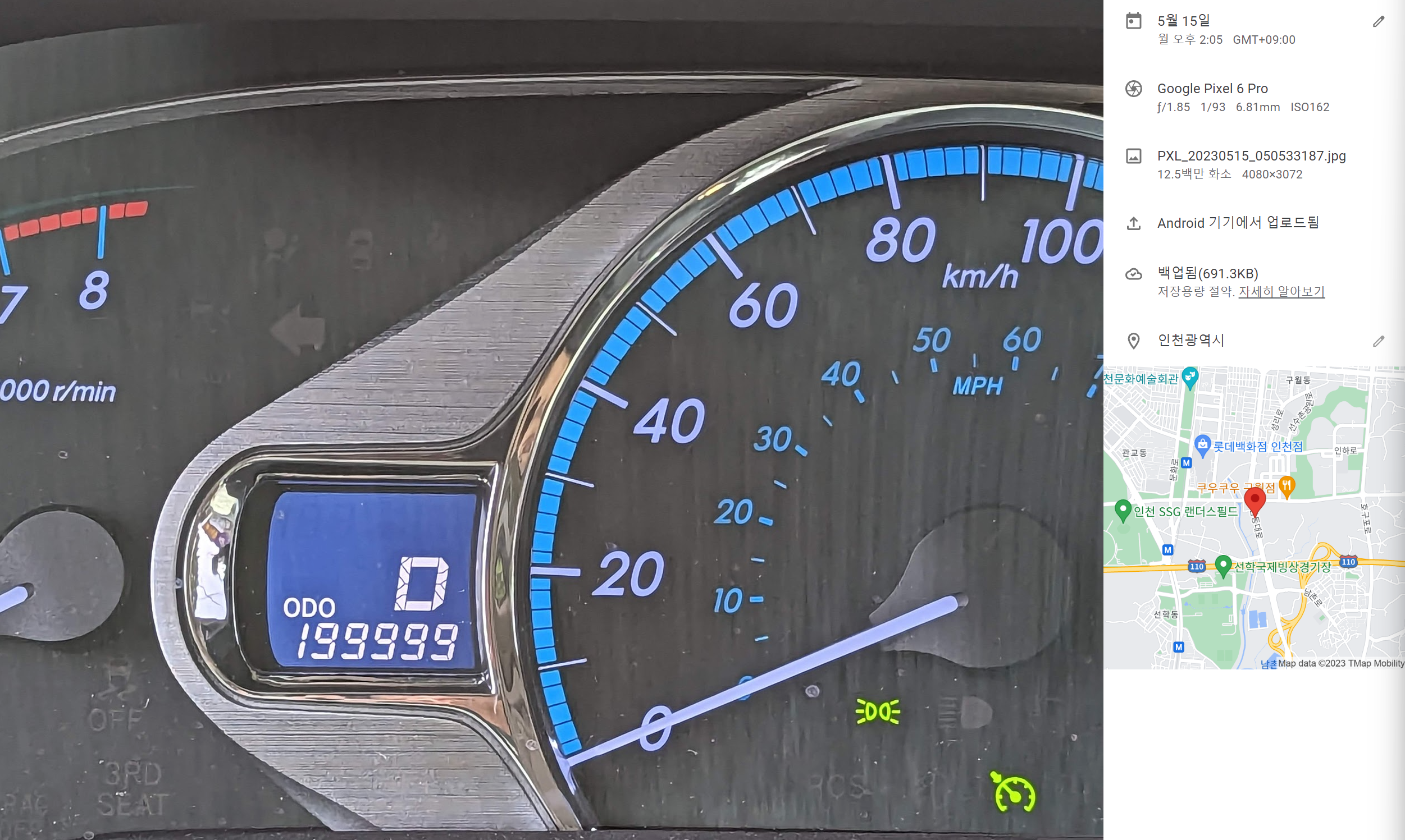 둘째 발가락 수술한 거, 정기 검진하러 병원에 가는 길. 계기판 적산거리 199,999km가 눈에 확 들어옵니다. 조만간 20만km 채우겠다는 생각을 얼마 전부터 하고 있었는데, 그 날이 결국 왔습니다.