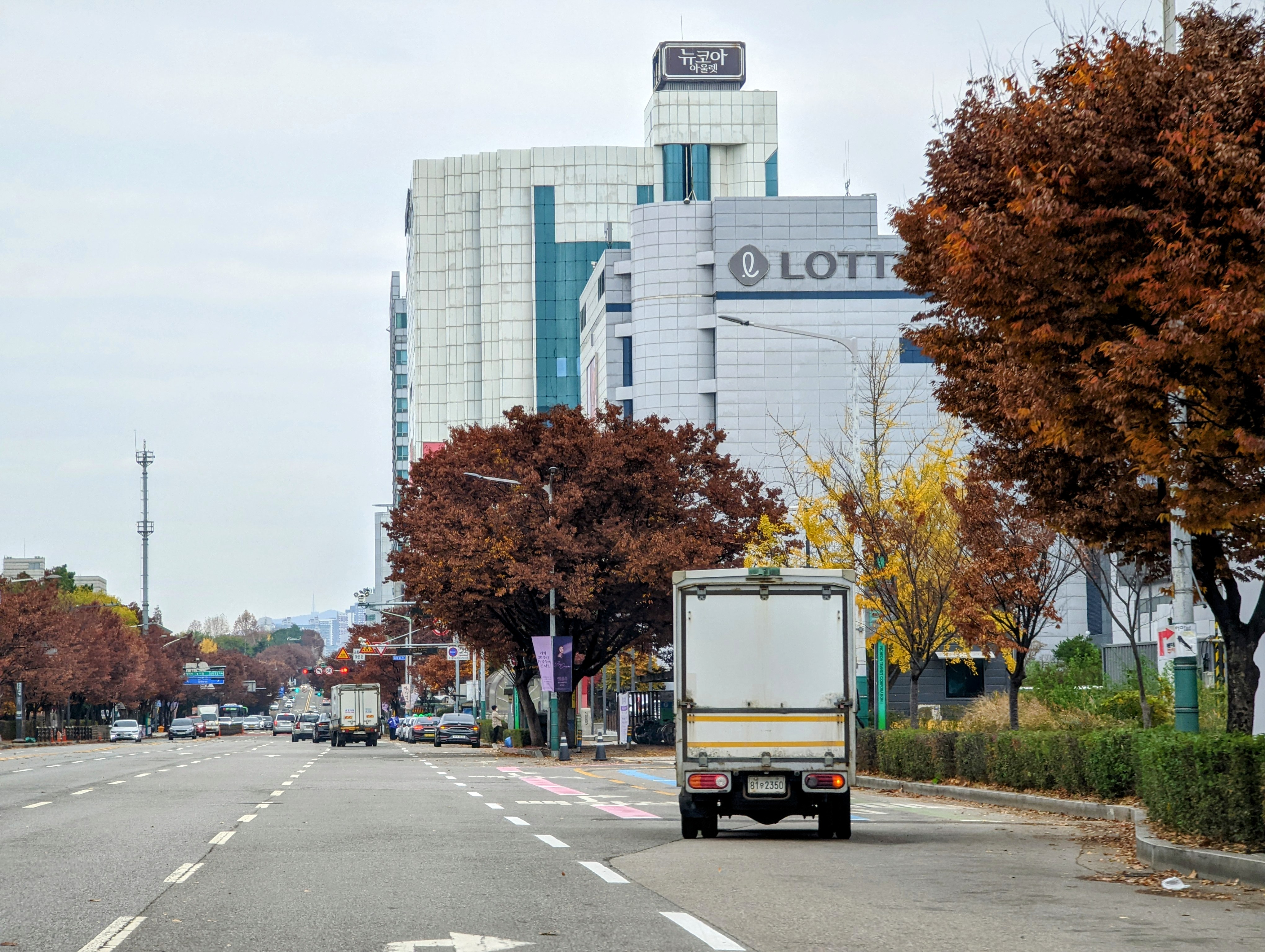 롯데백화점 서편을 남북으로 지나는 길이 '예술로', 동편은 '연남로'입니다. 예술로를 타고 북쪽으로 올라가다 보면 주차장 입구가 나옵니다.