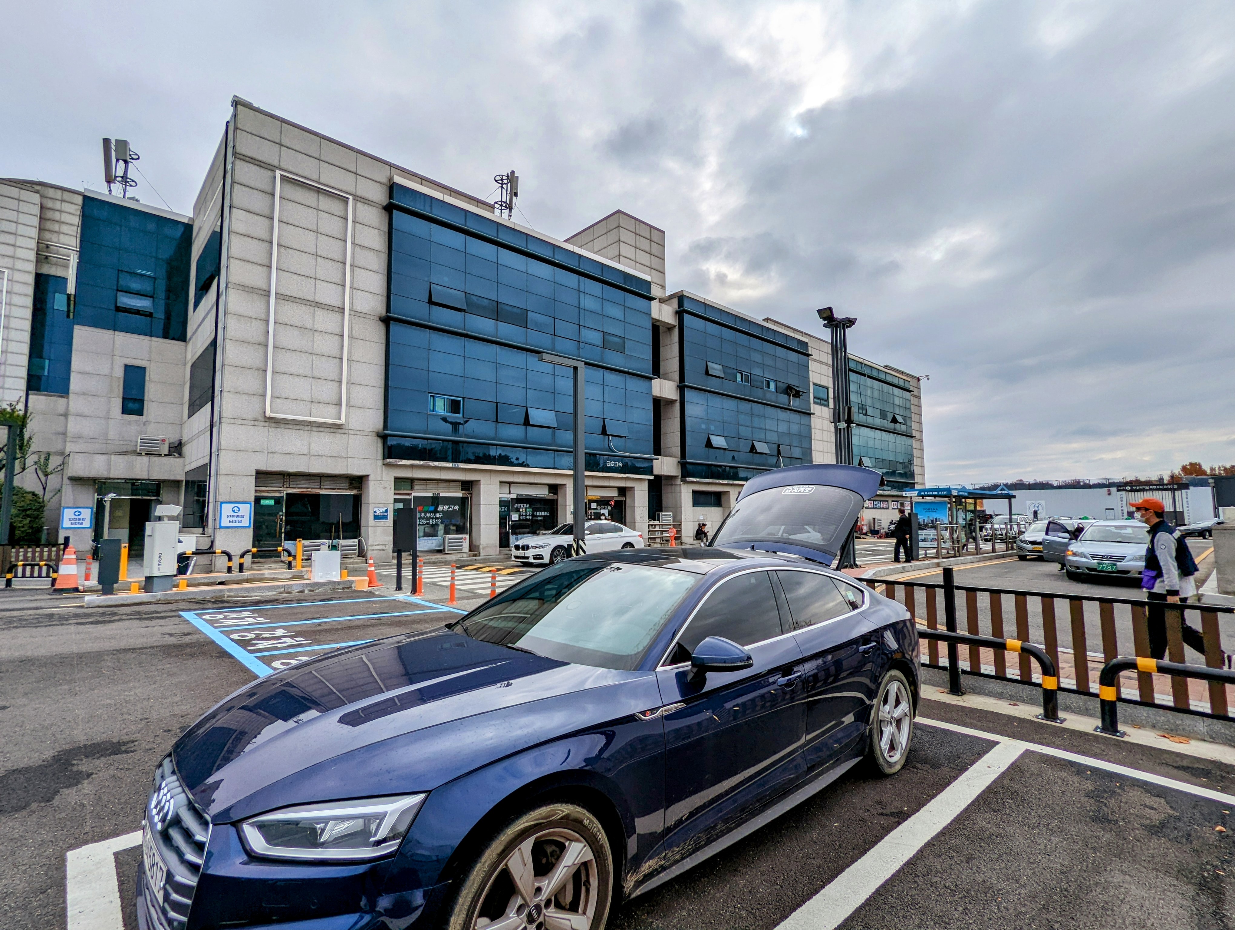원래 이 곳은 터미널과 백화점이 감싸고 있는 공원이었는데, 얼마 전부터 주차장으로 바뀌었습니다. 기존 주차장 공사 때문에 임시로 만든 건지, 이대로 쭈욱 주차장으로 활용될 건지는 모르겠습니다만, 터미널에 볼 일 있는 입장에선 참으로 고마운 공간입니다.