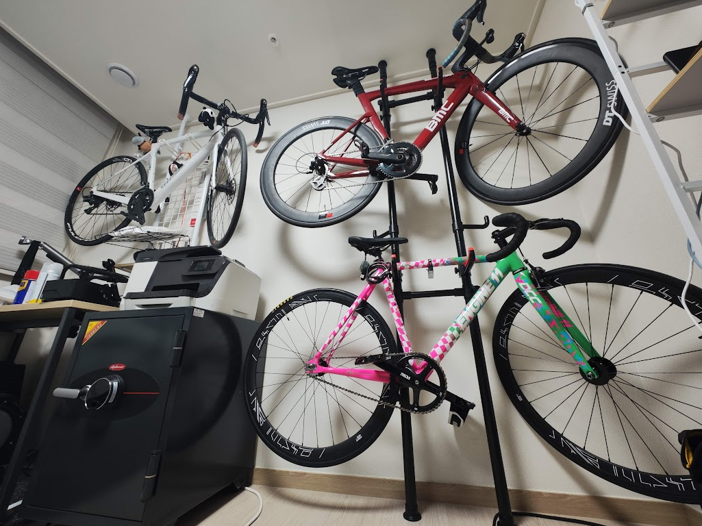 2025년 3월 8일 주문, 3월 9일 받아본 실내 자전거 거치대 제품입니다.원래 사용하던 행거(사진 속 왼쪽 하얀색 제품)는 자전거 거치 전용이 아닌 일반 행거였던 반면, 이번에 구입한 건 자전거 전용입니다. 귀찮음 때문에 세부 부품 사진이나 조립 과정 사진은 없네요. 특별히 뛰어난 점이 있거나 하진 않습니다. 워낙 단순한 기능의 제품이니 그럴만도 하지요.오히려 특별히 불만족스러운 점이 전혀 없다는 게 장점이라면 장점이겠습니다.전반적으로 만족할만 합니다. 추가로 구매해야 한다면 해당 제품으로 구매할 것 같네요.