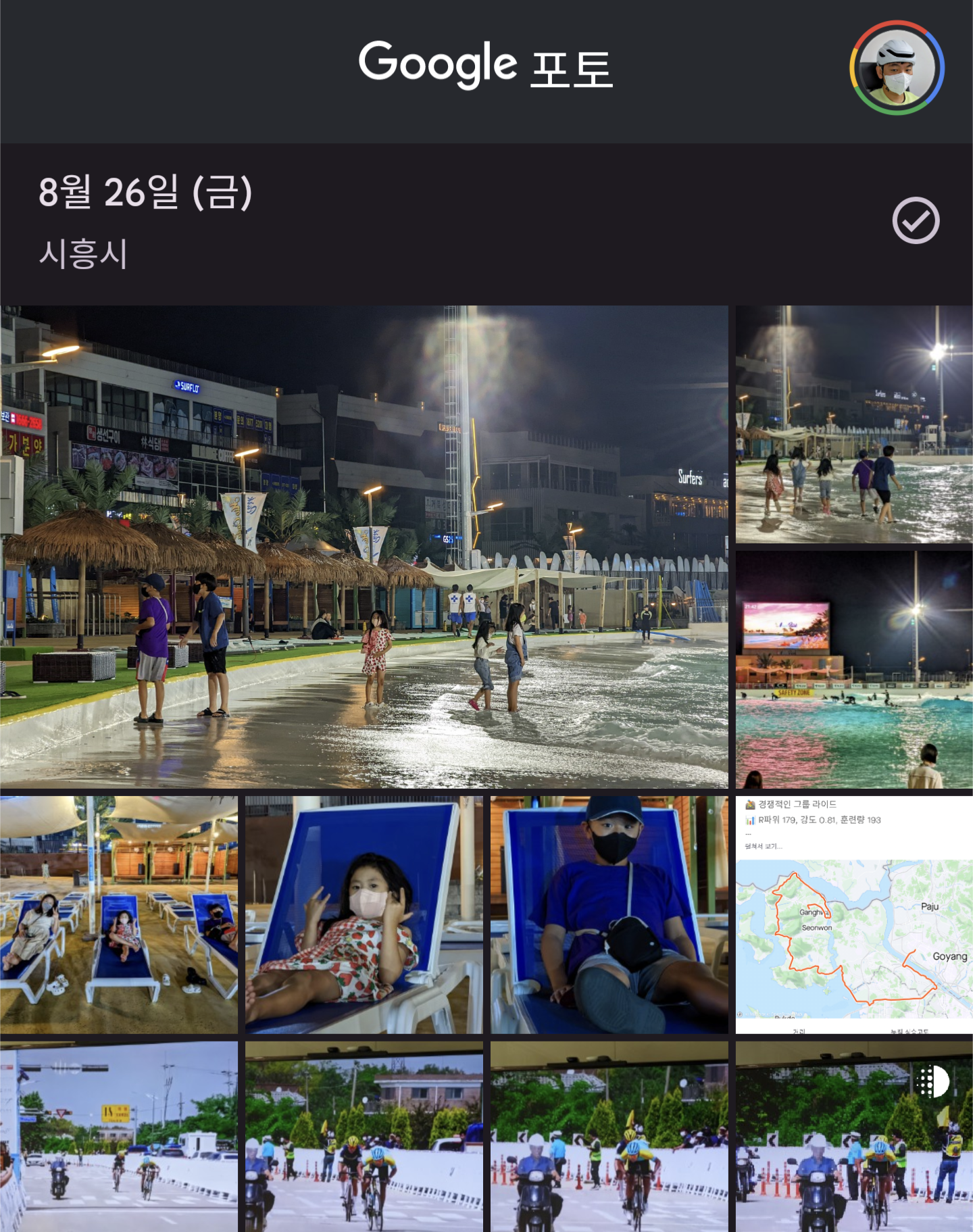 저녁에 자려고 누워서 SNS 프로필 바꿀거 찾던 중, 얼마되지 않은 듯한 사진이 눈에 확 띄네요. 그런데, 촬영 날짜를 보니, 무려 2달 전이네요? 하아.... 눈 깜짝할 사이에 2달이라니 ㄷㄷ 나이가 먹을수록 시간이 빨리 가는것처럼 느껴진다는 건 만고불변의 진리고, 실제로도 몸소 느끼고 있었지만, 이번 사진은 그 정도가 상당했습니다. 저 날 거북섬에 축제가 있었고, 무료 개방한 인공서핑장 들어갔다가 아는 가족을 만나 애들끼리 놀았던 기억.. 진짜 엊그제 같은데 말이죠. 근데 그게 2달 전이라니, 그럼 그 때 이후로 지금까지 난 뭘 하고 있었던 건가... 시간이 순삭된 느낌. 시간이 허무하게 버려진 느낌이었습니다. 아... 어떻게 해야 할까? 일기를 써 두면 기억해내는데 도움이 될테니 좀 나아질까? 싶다..