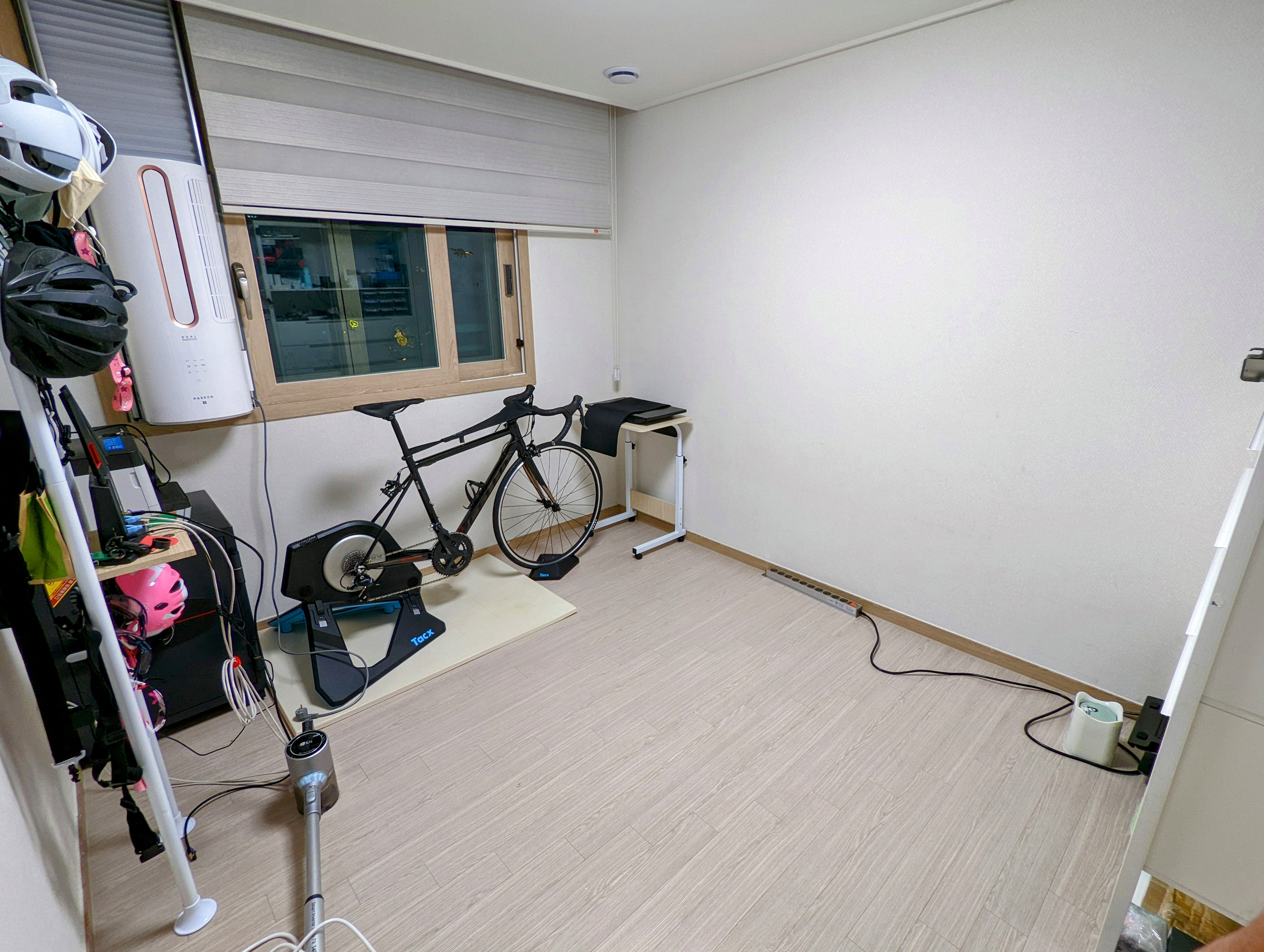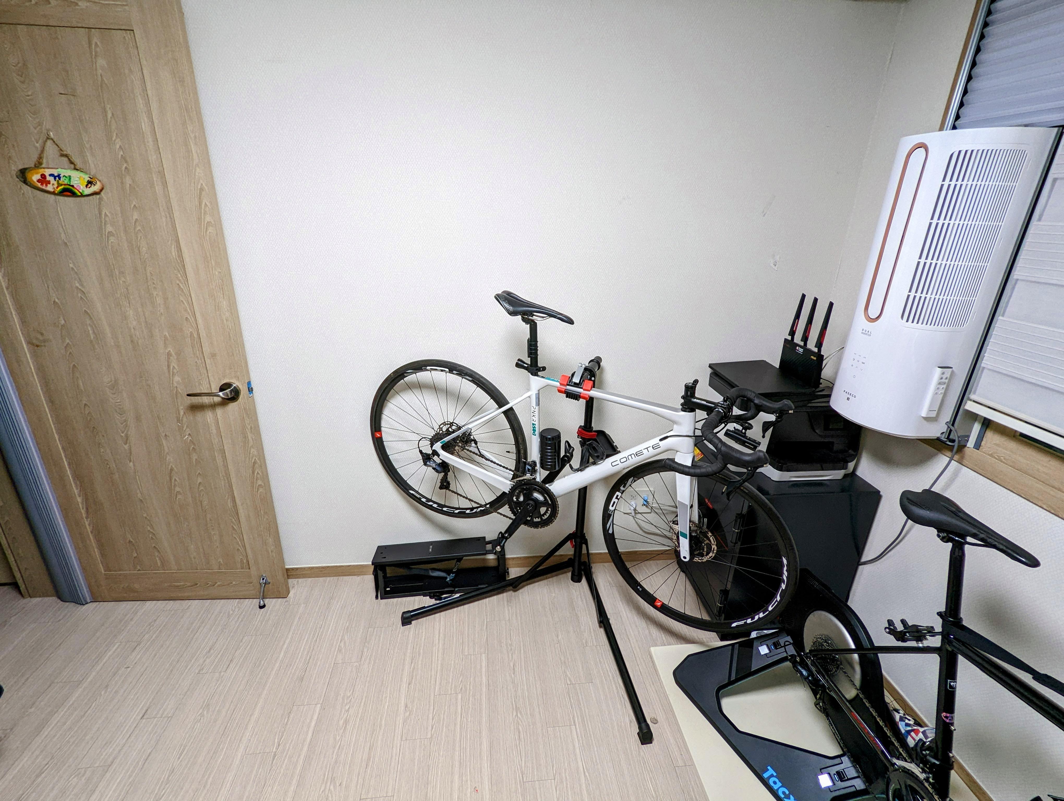 약 2.8m 폭의 공간에 자전거, 컴퓨터, 워킹패드 라는 세 가지 요소가 공간 낭비 없이 딱 맞아 떨어지네요.