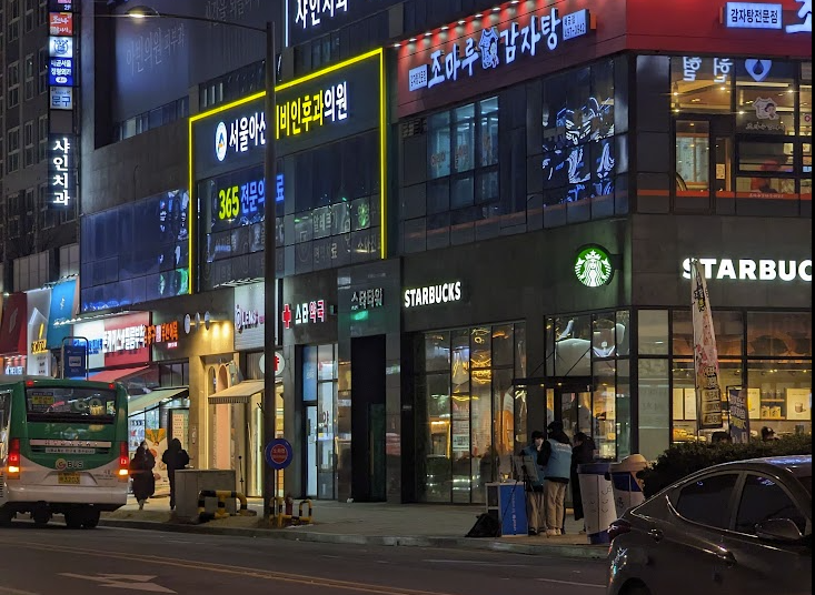 '스타타워'라는 건물에 입점한 '스타벅스'와 '스타약국'