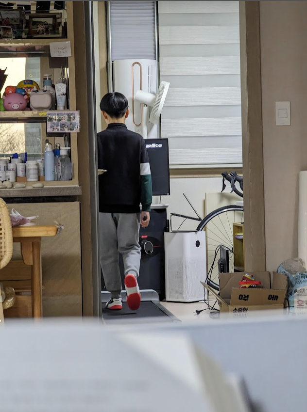 걸음걸이 교정을 위해 매일 1시간 30분씩 걷기 연습을 하는 아들.