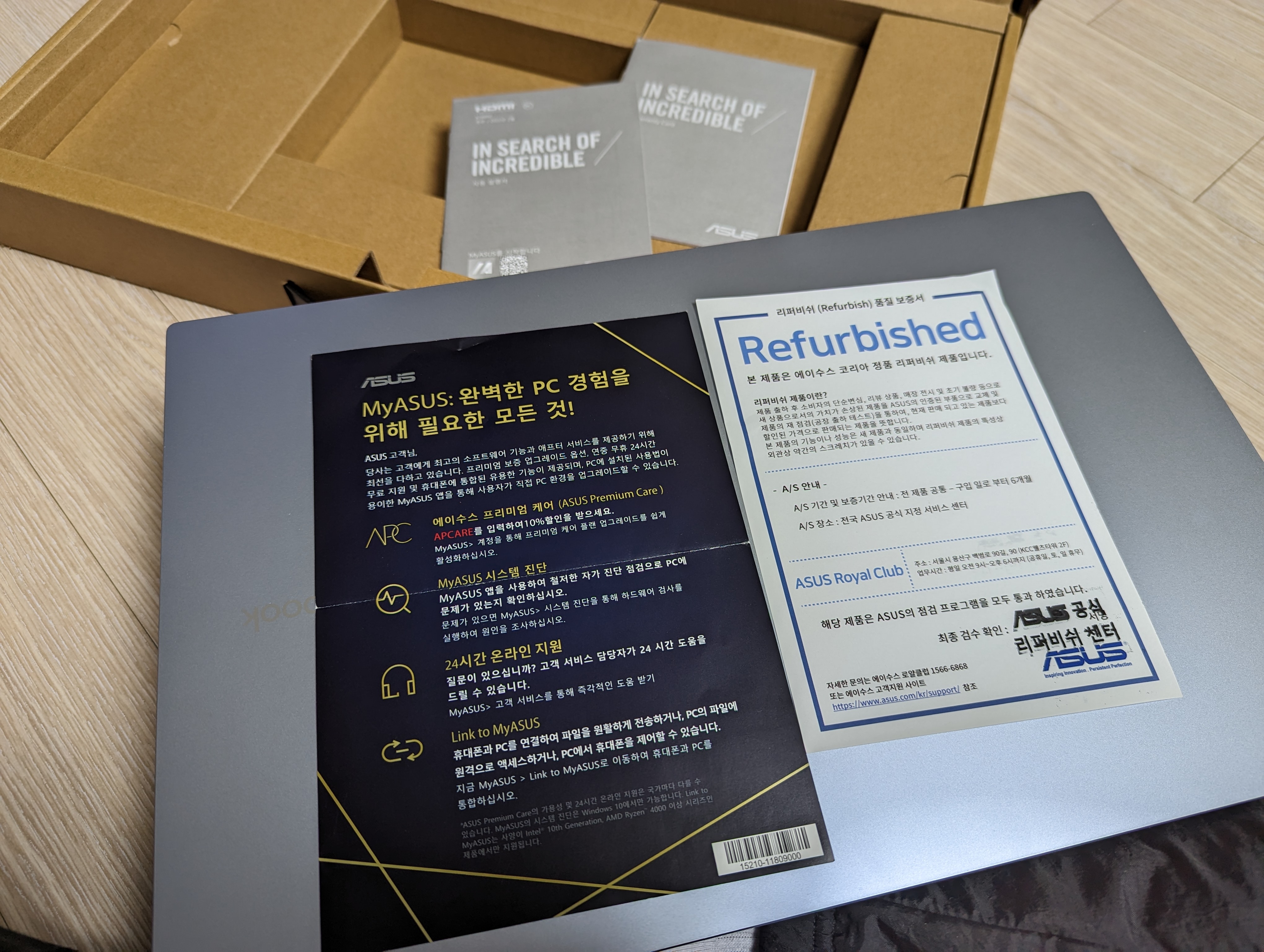 ASUS 공식 리퍼비쉬 센터의 검수 확인이 찍혀 있어,